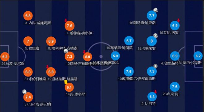 对比之下,森林两个破门反倒是更像曼联,他们披上了红衣如果远观也真的是更像“豪门”了。第一分右路气球耐心导入禁区,吉布斯-怀特破门。第二分又是右路起球,萨沃纳破门。除了组织模式外,森林进球也是很吃身体,看的出他们主要优势就在这了。